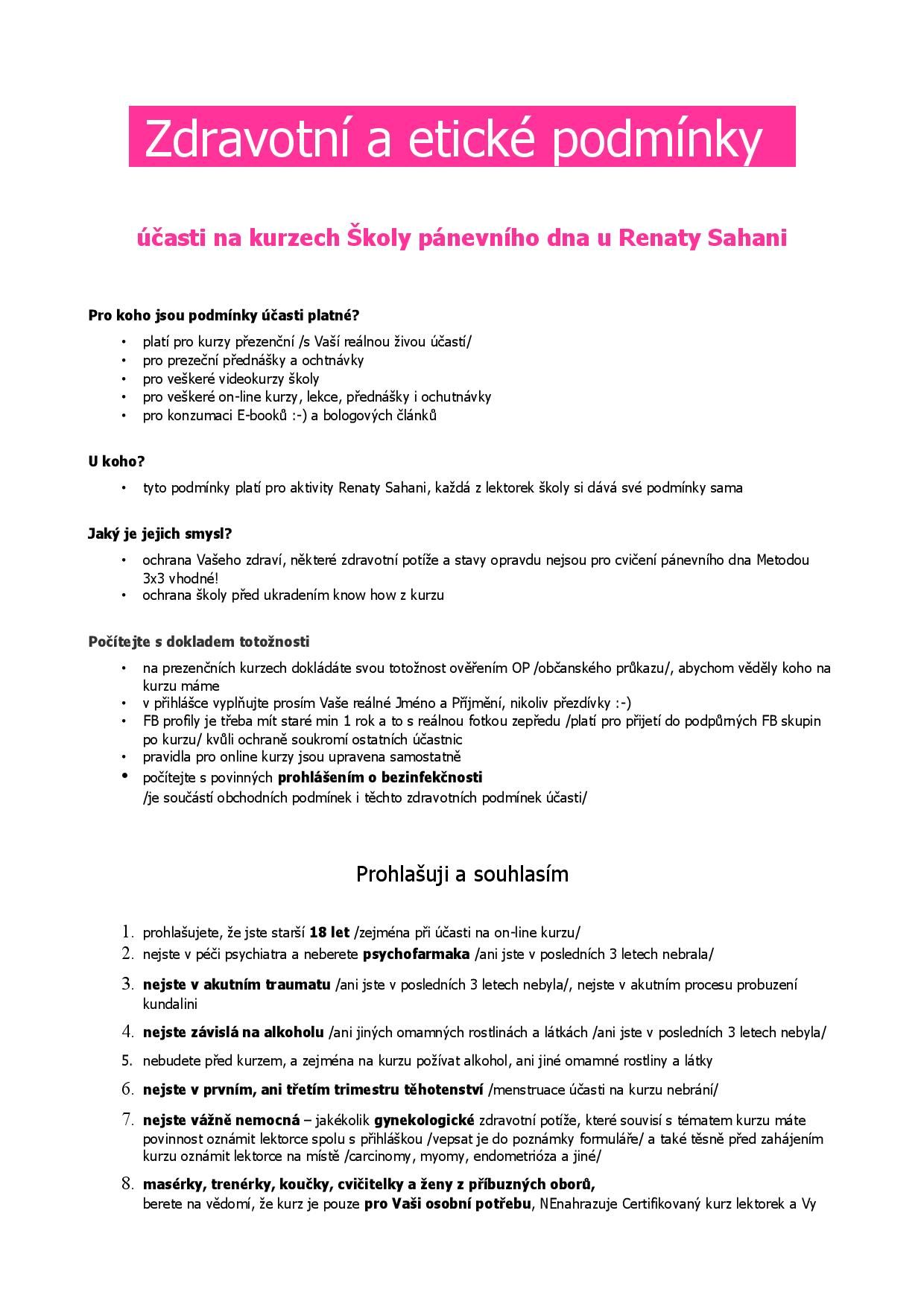 Zdravotní a etické podmínky účasti na kurzu