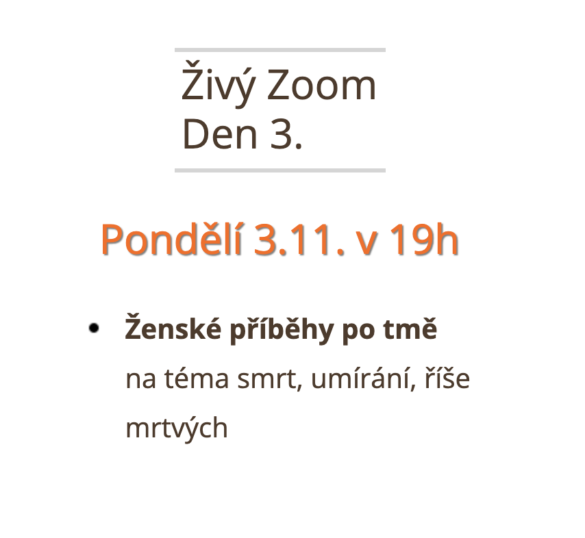 - V naší kultuře se o smrti moc nemluví a tak pojď si to dosytit na živé vysílání přes Zoom, přináší to pokoru a jiný pohled na život